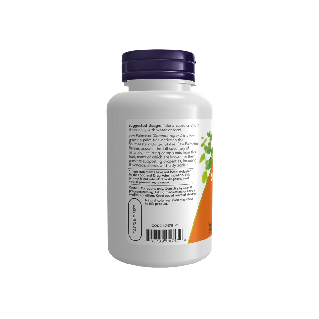 El extracto de Saw Palmetto (Serenoa repens) de NOW Foods es un suplemento natural que apoya la salud prostática y la función urinaria masculina.